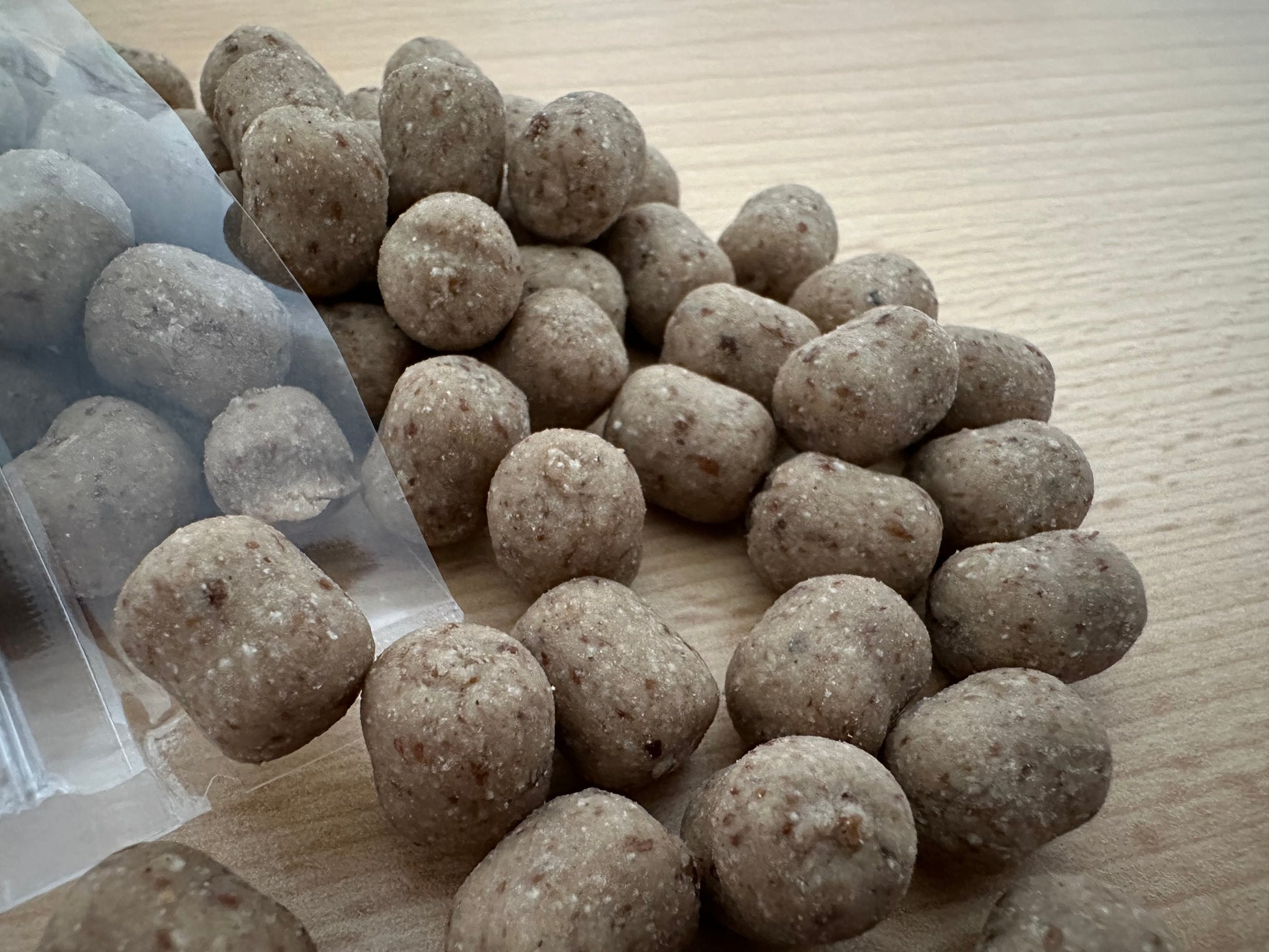 Analyse: Rohprotein: 14,6%, Rohfett: 10,4%, Rohasche: 1,9%